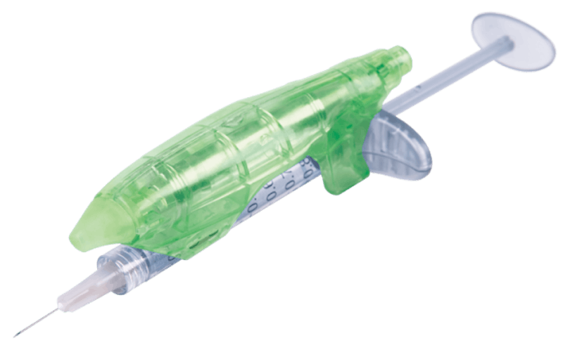 “This patent pending Ouchless™ Needle is a disposable syringe-attachable dispenser that delivers a precise stream of numbing vapocoolant to the skin just ahead of the tip of the needle just before the skin is pierced, and does not leave patients with post injection numbness.”